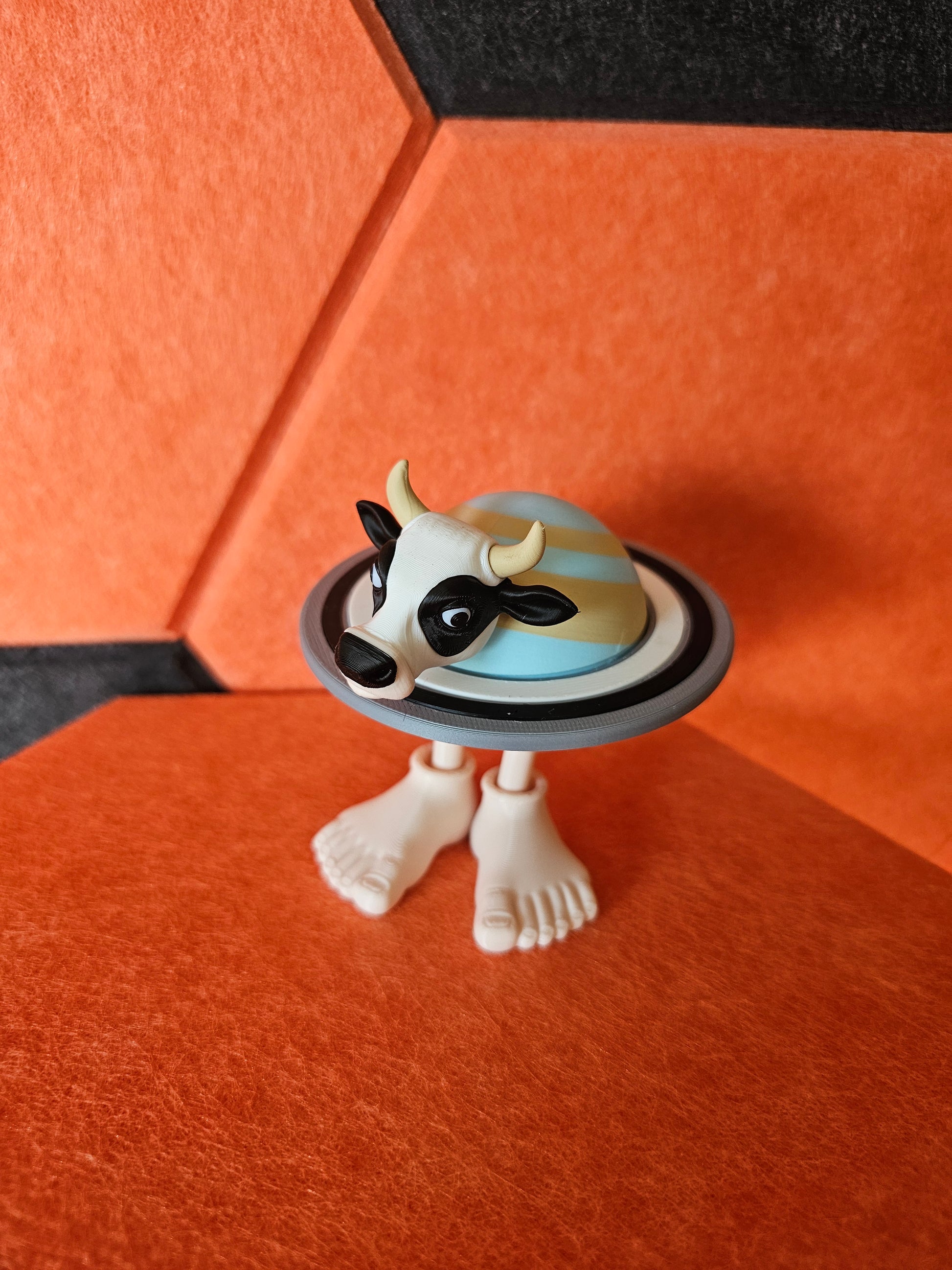 🐮 La Vaco Saturno Saturnita– A cosmic bovine rocking Saturn’s rings and human feet for maximum absurdity.